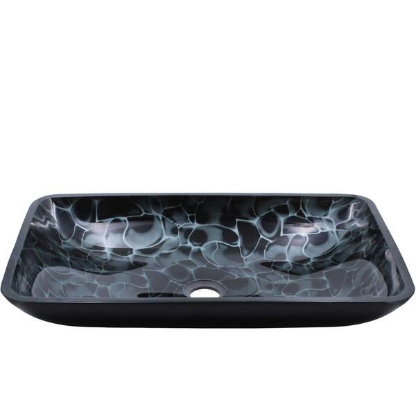 Cellule Hand Painted Black and Silver Glass Rectangle Vessel Sink