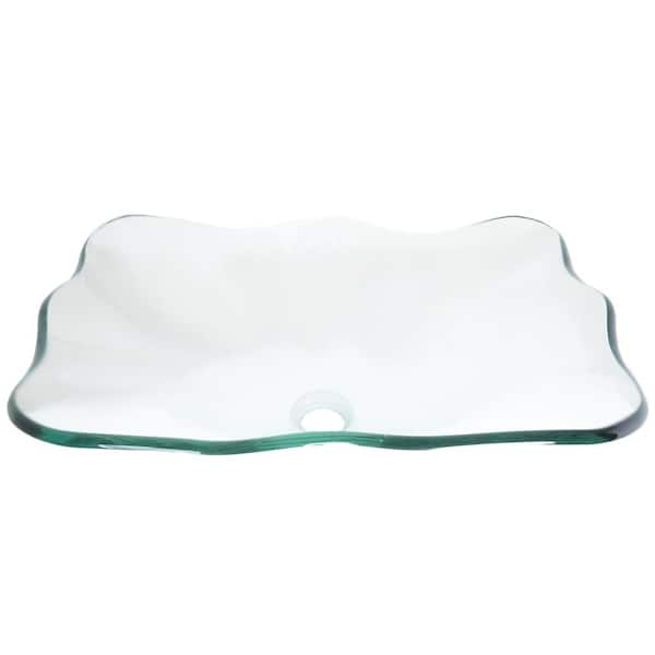 Elegante 20 in. Clear Glass Rectangular Vessel Sink with Drain in Chrome