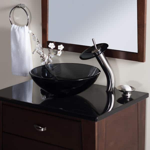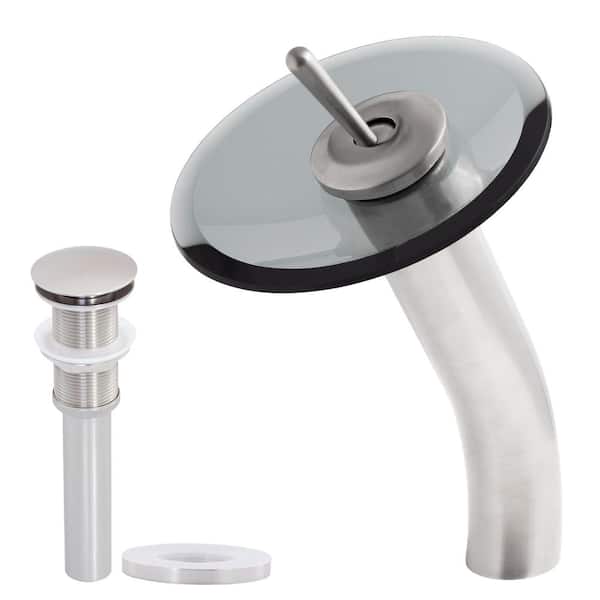 Falls Single Hole Single-Handle Bathroom Faucet with Drain Assembly in Brushed Nickel and Smoke