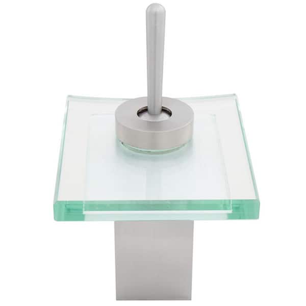 Monroe Single-Handle Waterfall Single Hole Bathroom Faucet with Clear Square Glass Disk in Brushed Nickel
