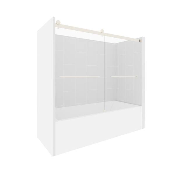 Dove Grey-Tetherow 60 in. L x 32 in. W x 83 in. H Rectangular Tub/ Shower Combo Unit in Brushed Nickel Right Drain