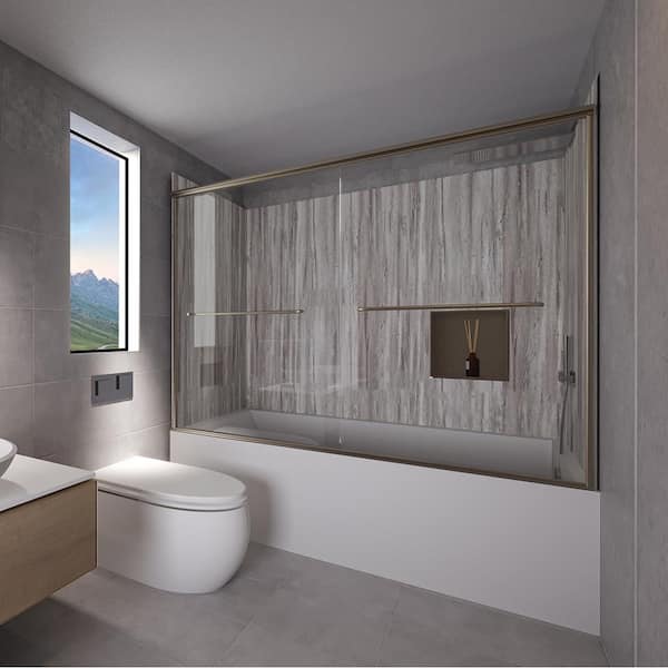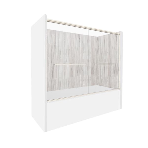 Driftwood-Rainier 60 in. L x 36 in. W x 83 in. H Rectangular Tub/ Shower Combo Unit in Brushed Nickel Right Drain