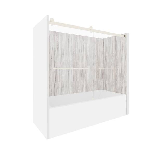 Driftwood-Tetherow 60 in. L x 30 in. W x 83 in. H Rectangular Tub/ Shower Combo Unit in Brushed Nickel Right Drain