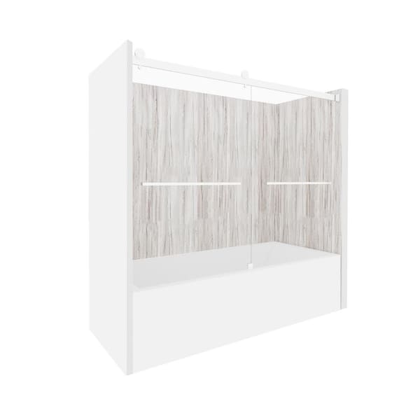 Driftwood-Tetherow 60 in. L x 36 in. W x 83 in. H Rectangular Tub/Shower Combo Unit in Chrome Right Drain