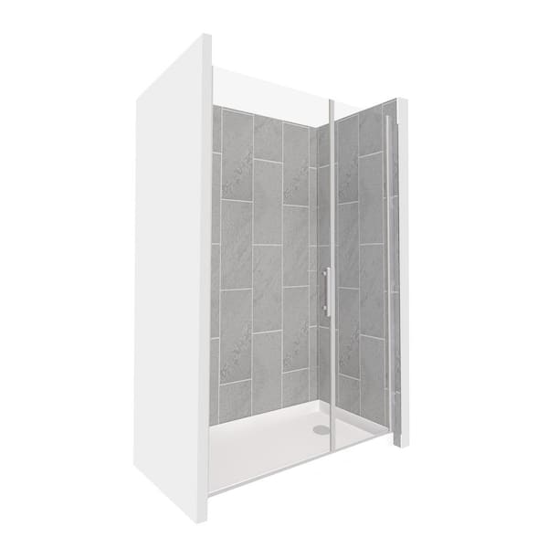 Slate Grey-Salishan 48 in. L x 34 in. W x 83 in. H Base/Wall/Door Rectangular Alcove Shower Stall/Kit Chrome Center