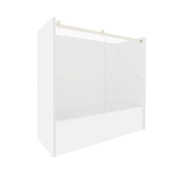 Winter White-Tetherow 60 in. L x 30 in. W x 83 in. H Rectangular Tub/ Shower Combo Unit in Brushed Nickel Left Drain