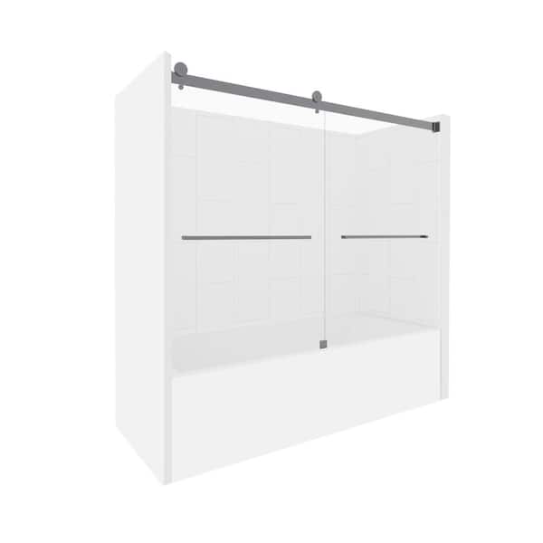 Winter White-Tetherow 60 in. L x 36 in. W x 83 in. H Rectangular Tub/Shower Combo Unit in Matte Black Right Drain