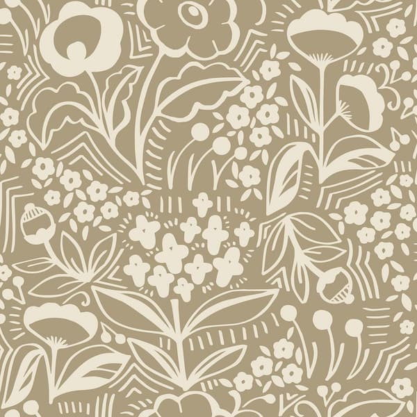 • Light brown floral peel and stick wallpaper