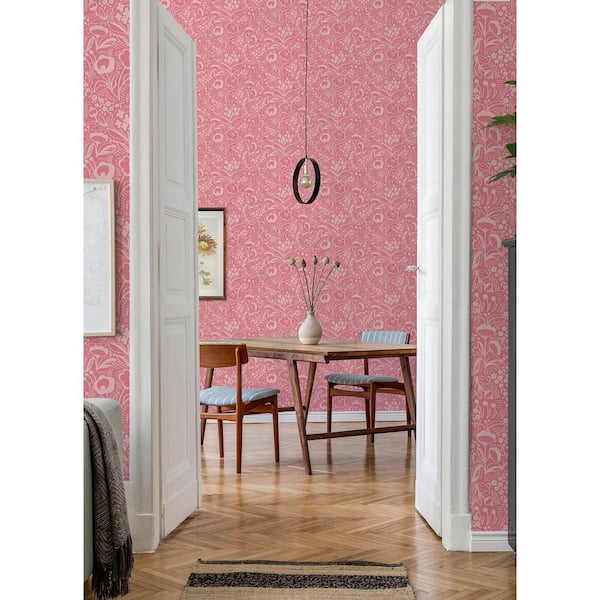 • Pink floral peel and stick wallpaper designed by Megan Carter
