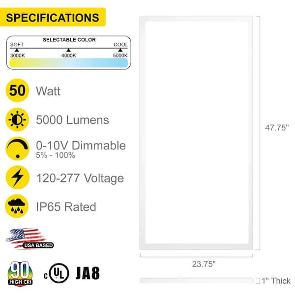2 ft. x 4 ft. Surface Mount 5000 Lumens, Integrated LED Panel, 120-277V, 3CCT 3000K-5000K Selectable, 0-10V Dimmable