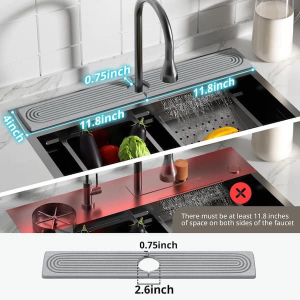 0.5 in. H x 23.6 in. W x 4 in. D Light Gray Quick Dry Sink Splash Guard, Sink Faucet Mat, Stone Sink Tray for Kitchen