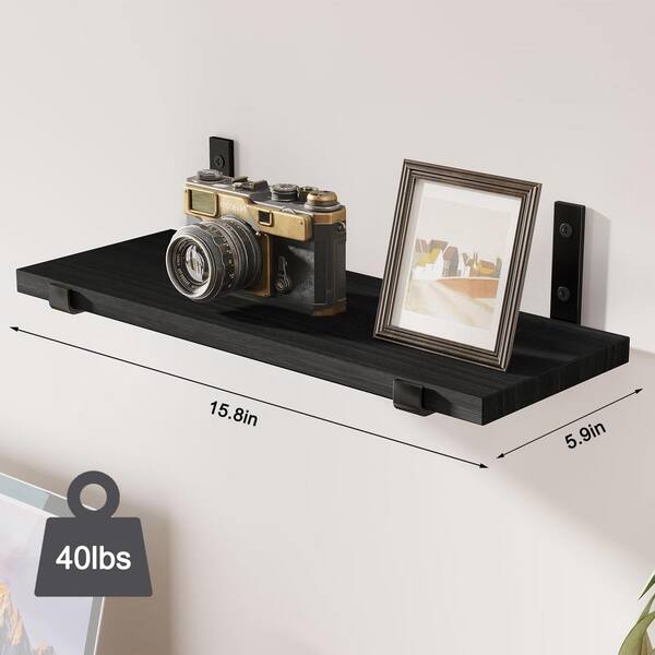 10-Pack 15.8 in. W x 0.6 in. H x 5.9 in. D Wood Rectangular Floating Shelf in Black for Bedroom, Kitchen and Bathroom