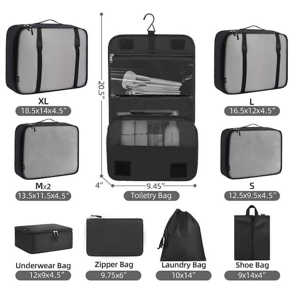 10-Piece Black Packing Cubes, Various Sizes Packing Organizer for Luggage