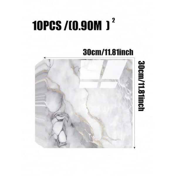 11.8 in. W x 11.8 in. H 10-Piece Marble Peel and Stick Backsplash Tile, Glue Up Back Shower Wall Panels in Gray White