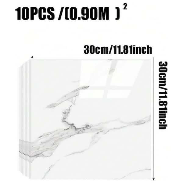 11.8 in. W x 11.8 in. H 10-Piece Marble Peel and Stick Backsplash Tile, Glue Up Back Shower Wall Panels in White