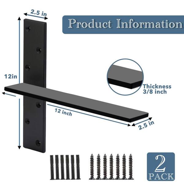 12 in. L Free Hanging Countertop Support Bracket, Hidden Floating Wall Bracket, 3/8 in. Thick Shelf Bracket (2-Pack)
