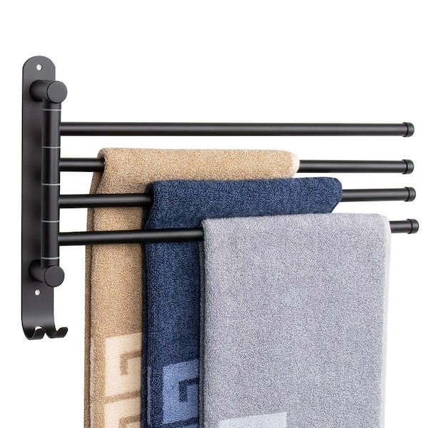 14.7 in. Stainless Steel Wall Mounted 4-Arm Towel Bar in Matte Black, Swivel Towel Rack with Hook
