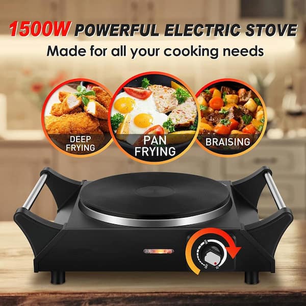 1500 W Single Burner 7.5 in. Black Electric Hot Plate Stove with Adjustable Temperature and Dual Handles for Cooking