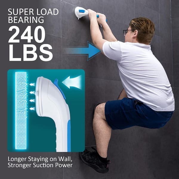 16.8 in. Shower Grab Bar in Blue, Suction Grab Bars, Bathroom Safety Grip for Seniors and Elderly (2-Pack)