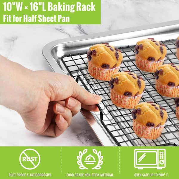 16 in. x 10 in. Wire Cooling Rack with Handle, Nonstick Baking Rack, Metal Mesh Cookie Rack (4-Pack)