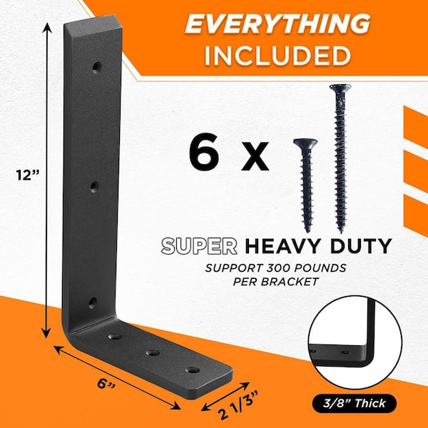 2-Pack 12 in. Countertop Support Brackets, L Shelf Bracket, Blind Shelf Support, Shelving Mounting Countertop Brackets