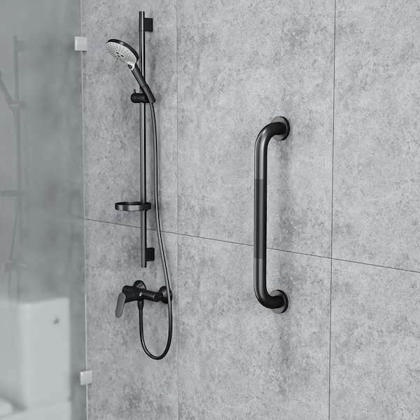 2-Pack 16 in. Stainless Steel Shower Grab Bar in Black with Anti-Slip Knurled, 500 lb. Load Capacity, Easy to Install