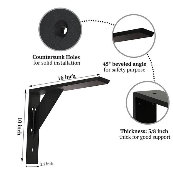 2-Pack 16 in. x 10 in. x 2.5 in. Countertop Support Bracket, Metal Shelf Bracket, Countertop Bracket