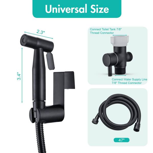2-Pack Tainless Steel Handheld Bidet Sprayer Bidet Attachment with Brass Valve, Hose and Mounting Kit, Matte Black