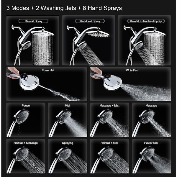 2-Piece High Pressure Rain Shower Head in Chrome with Fixed Showerhead and 10 Sprays Handheld Shower Head