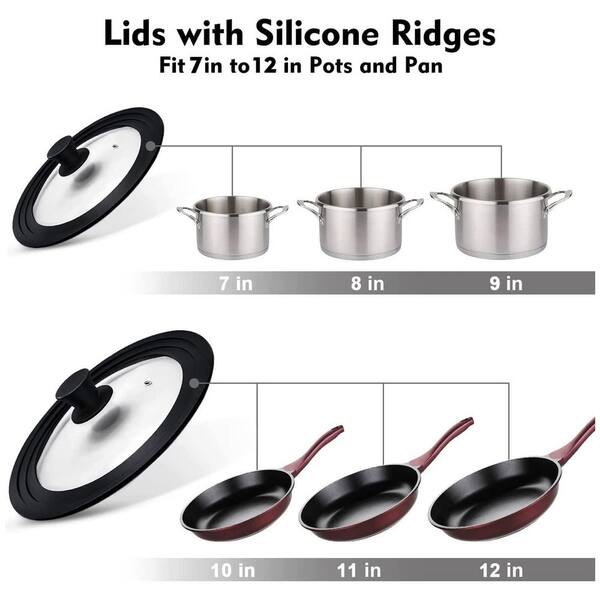 2-Piece Universal Tempered Glass Pot Lid High Heat Resistant Silicone Rim 7 in. 8 in. 9 in. 10 in. 11 in. 12 in. Dia Pot
