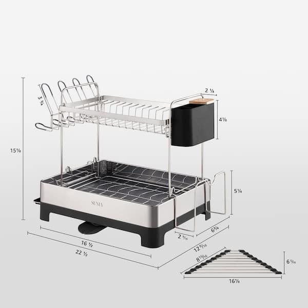 2-Tier Countertop Dish Rack, Extra Large Stainless Steel Dish Rack, Multifunctional Dish Drainers for Kitchen Counter
