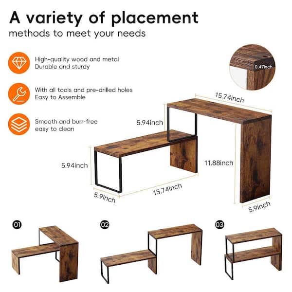 2-Tier Rustic Brown Countertop Storage Organizer Stackable Expandable Shelf, Space-Saving Wood and Metal Rack