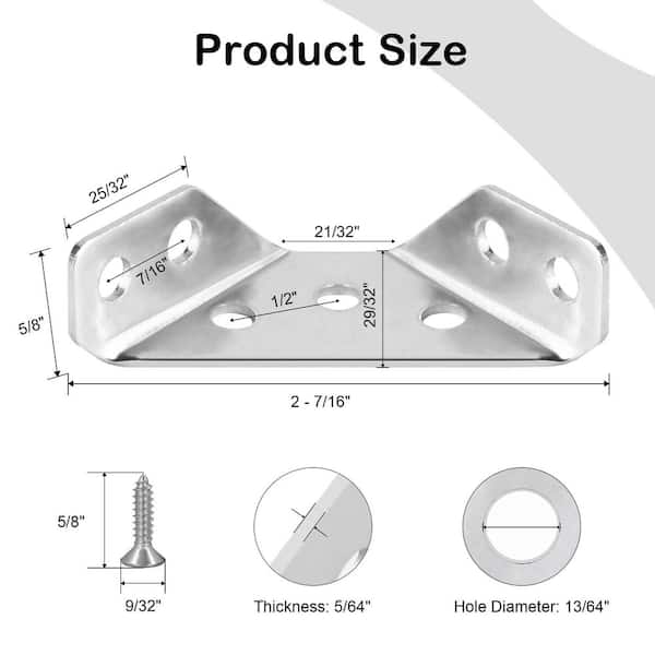 24-Pack Stainless Steel Furniture Corner Connectors with Screws, Triangular Support Brackets for Drawers and Cabinets