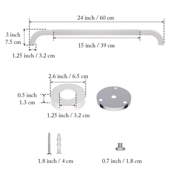 24 in. Anti Slip Shower Grab Bar in White, Knurled Bathroom Grab Bar, Safety Hand Rail Support for Handicap Elderly