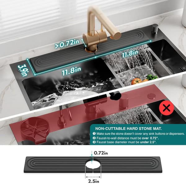24 in. Countertop-Supported Installation Sink Front Trays, Long Diatomite Fast Drying Stone Sink Front Tray, Black