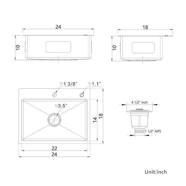 24 in. x 18 in. Drop in Single Bowl Brushed Stainless Steel Kitchen Sink with Drain Kit and Faucet