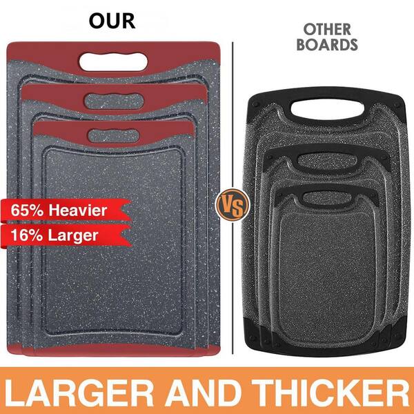 3-Piece Extra Large Plastic Cutting Board Set with Juice Grooves and Easy-Grip Handles, Red and Gray