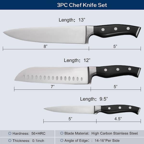 3-Piece Stainless Steel Kitchen Knife Set, Sharp Knives, Cooking Knives for Kitchen