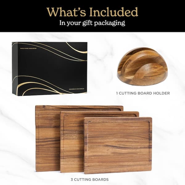 3-Piece Walnut Wood Cutting Board Set with Holder for Kitchen, Rectangular Wooden Chopping Board