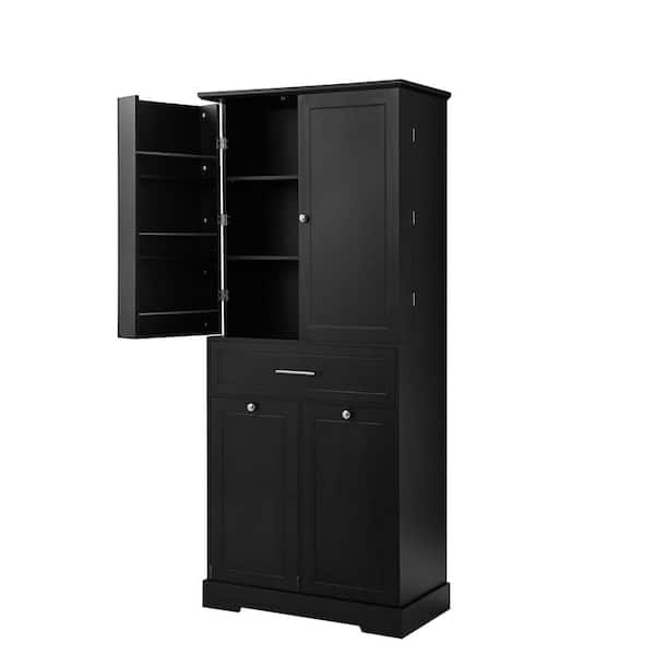 31.2 in. W x 16.4 in. D x 72.6 in. H Ready to Assemble Bathroom Storage Cabinet in Black with Tilt-Out Laundry Hamper