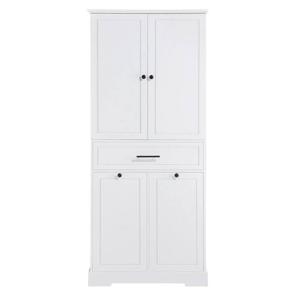 31.2 in. W x 16.4 in. D x 72.6 in. H Ready to Assemble Bathroom Storage Cabinet in White with Tilt-Out Laundry Hamper