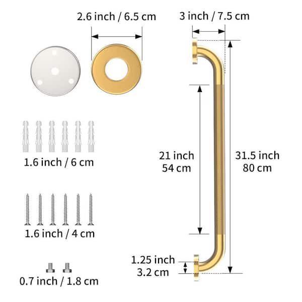 32 in. Anti Slip Shower Grab Bar in Gold, Knurled Bath Grab Bar, Safety Hand Rail Support for Elderly
