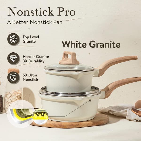 4-Piece 1.5 qt. and 3 qt. White Granite Non Stick Induction Sauce Pan Set with Lid and Pour Spout