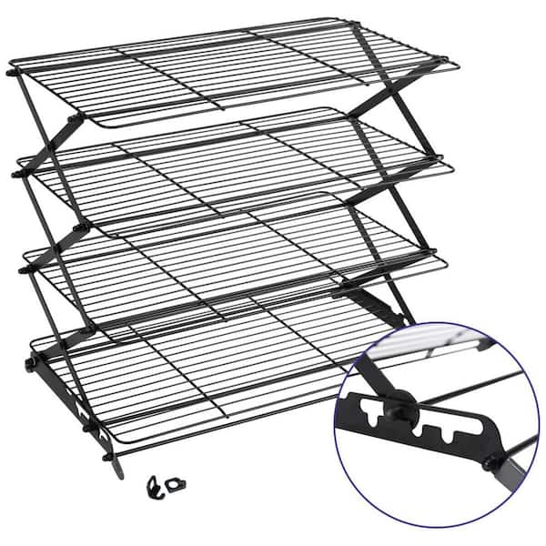 4-Tier Black Collapsible Cooling Rack with Adjustable 3 Setting, Stackable Roasting Cooking Drying Wire Cooling Rack