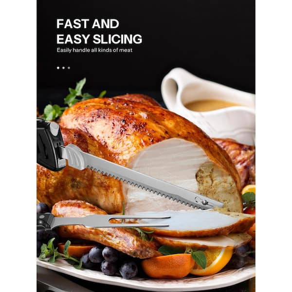 6.3 in. Black Stainless Steel Electric Knife with 2 Blades and Fork for Carving Meats, Poultry and Bread