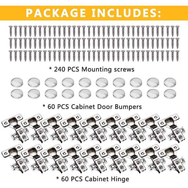 60-Pack Stainless Concealed Soft Close Cabinet Door Hinges with 100 Degree Opening Angel for 1/2 in. Partial Overlay