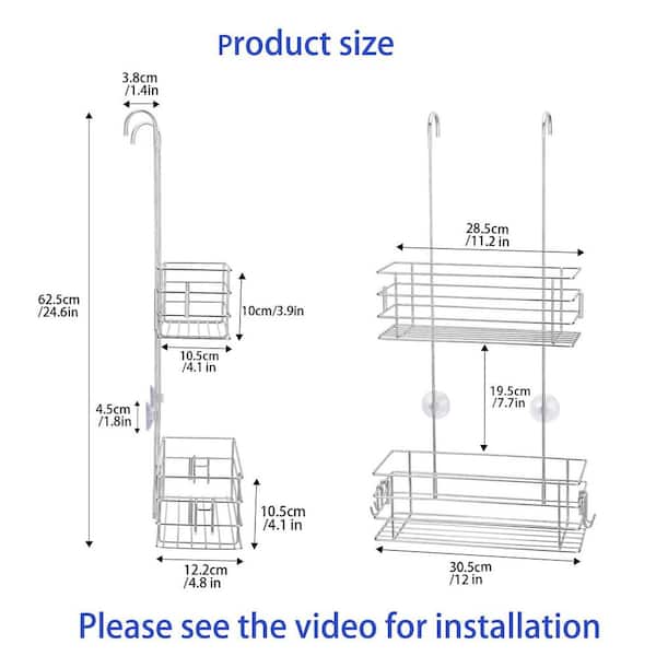 Bathroom Hanging Mount 360° Rotation Adjustable Rust Resistant Polished Shower Caddy, Stainless Steel Rust Proof, Silver