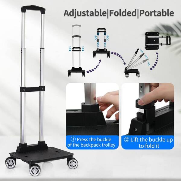Black Aluminium Alloy Folding Luggage Cart with Luggage Strap, Backpack Trolley Wheeled Cart for Bags