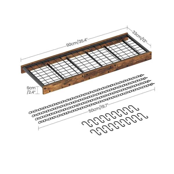 Hanging Pot Rack with 18 S-Shaped Hooks for Kitchen, Ceiling Mounted Pot Rack for Cookware Storage, Brown and Black