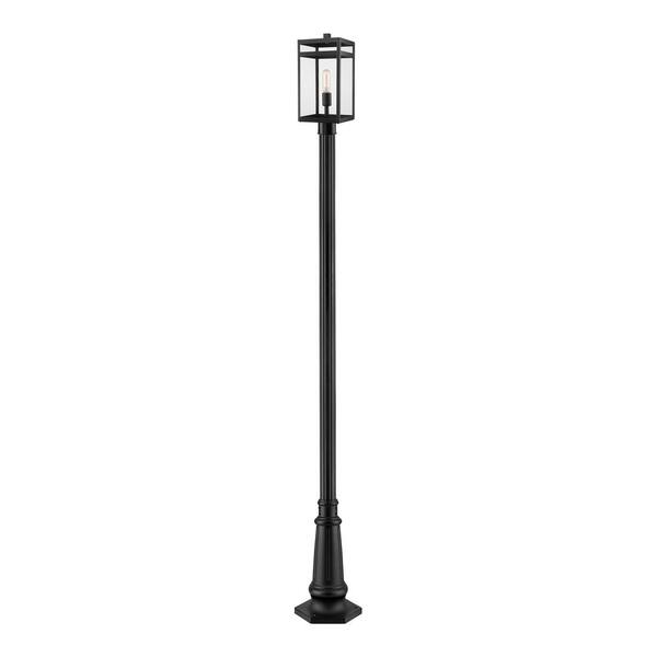 Nuri 1-Light Black 111.75 in. Aluminum Hardwired Outdoor Weather Resistant Post Light Set with No Bulb Included